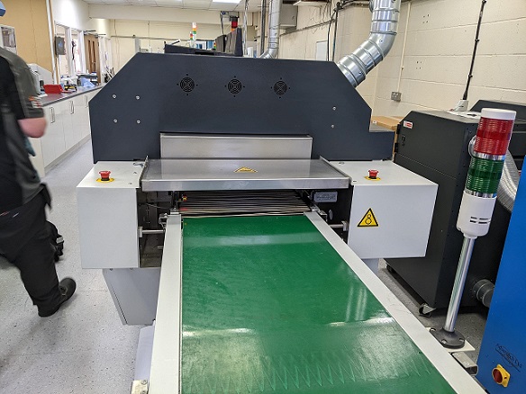 PC Controlled and the conveyor type is the Ersa bars. Our understanding is these bars might be able to be removed and width adjust enabled or added so that the machine can be used in-line by the pins.
